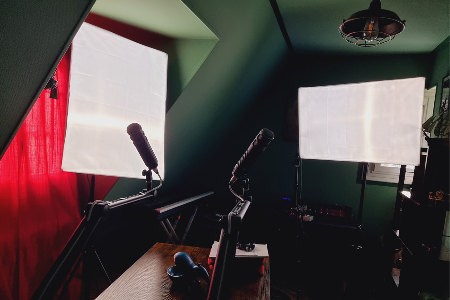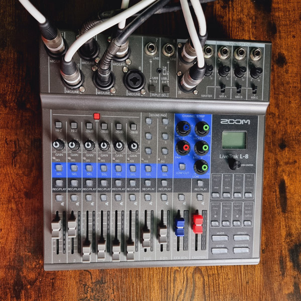 Le son est enregistré sur un « Zoom Podtrak P8 » pour votre podcast et sur un « Zoom Livetrak L8 » pour les musiciens (chant/guitare ou chant/piano). La vidéo quant à elle se fait sur un « Samsung s23 ultra » voire deux.